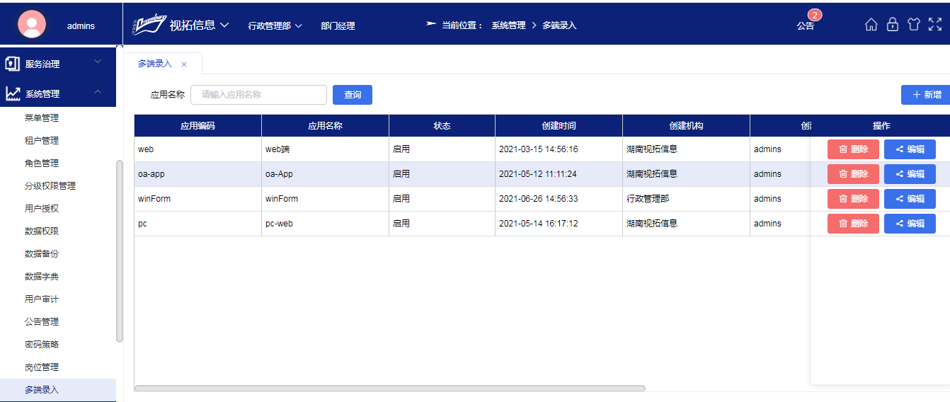 可以新增,编辑,删除多端录入;被绑定的多端录入不可被删除;需先解除绑定;如下图所示: