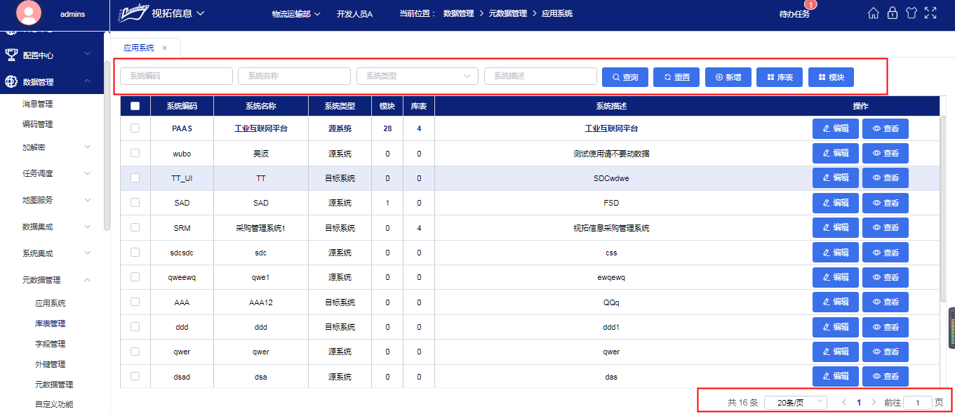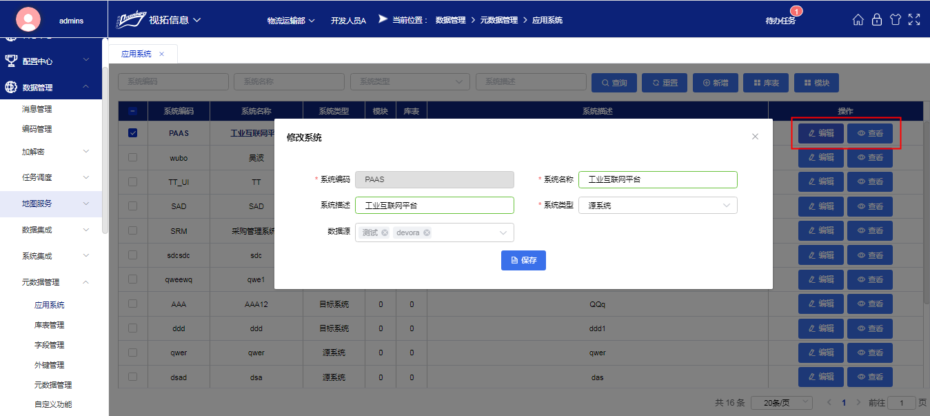 可对应用系统进行编辑,查看,如下图所示: