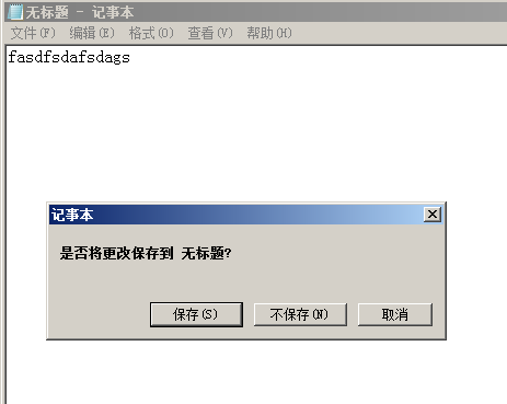 > 说明:打开记事本随便输入点内容,然后点击右上角关闭,这时我们会看到是否保存的对话框,我们用这个函数来点击“保存”按钮,运行如下代码: