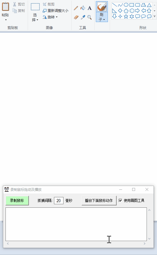 **说明:** 录制工具默认是20ms抓取一次的,如果你的鼠标操作操作太快可能抓取不到,因此录制的时候请慢点操作,播放的时候是间隔20ms,有些机器性能差的可以使用DragToEx后两个参数delayMilliSecondsBefore和delayMilliSecondsAfter来适当加大延时。