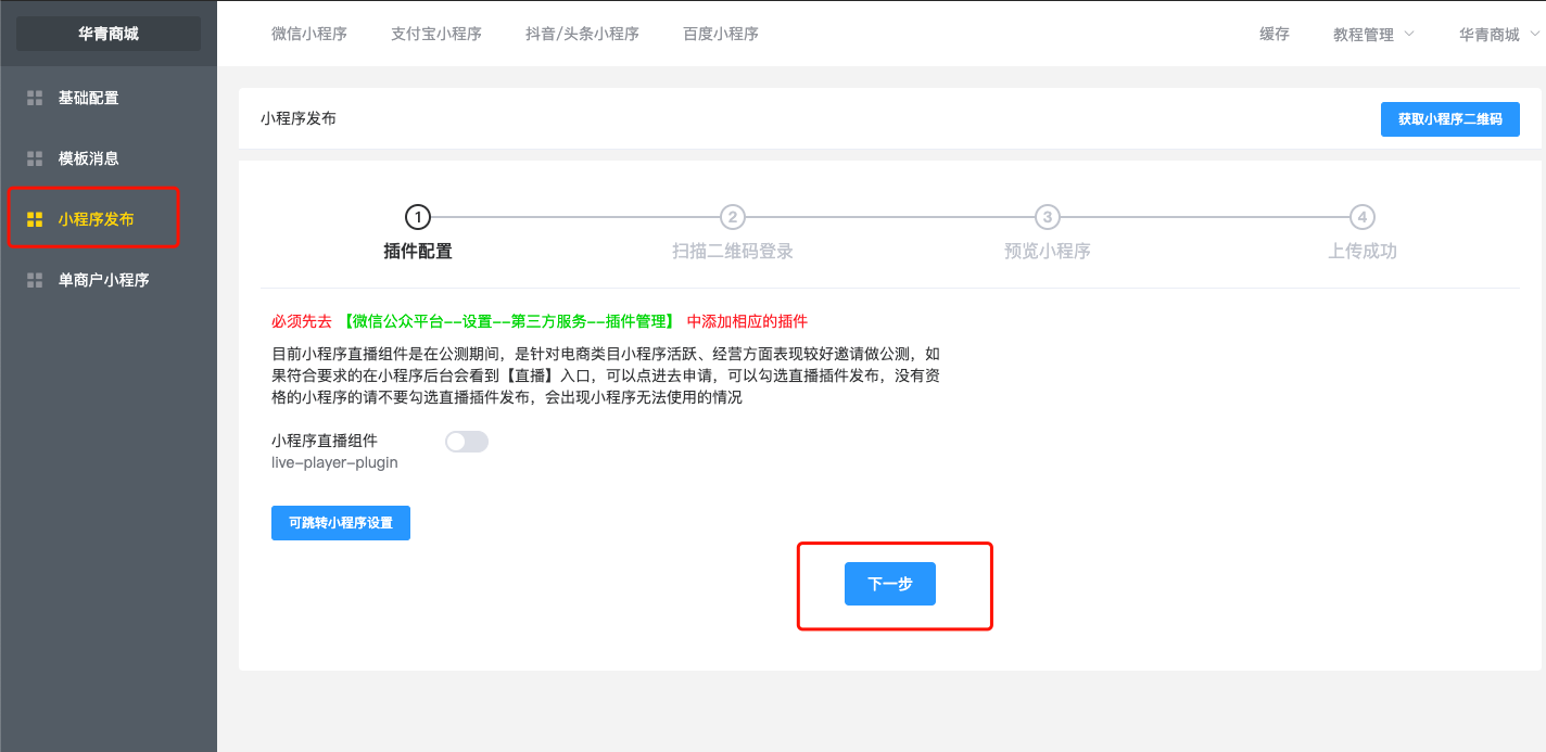 我们华青商城每周都会有功能优化和更新,并且会在公众号实时发布更新内容,**如果你有需要更新,就可以自行上传代码审核,完成系统更新.**