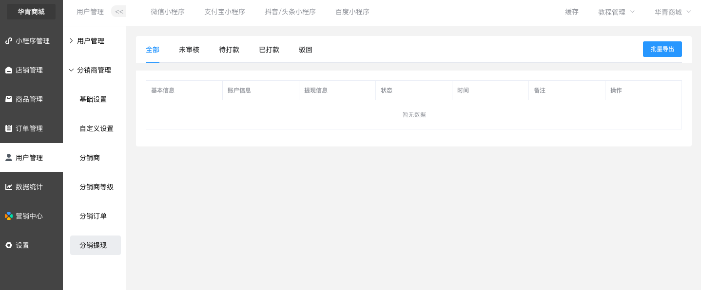 * 当分销商的佣金达到一定程度,可申请提现(**注:可提现佣金必须是订单已完成-收货并且已过售后时间**)
