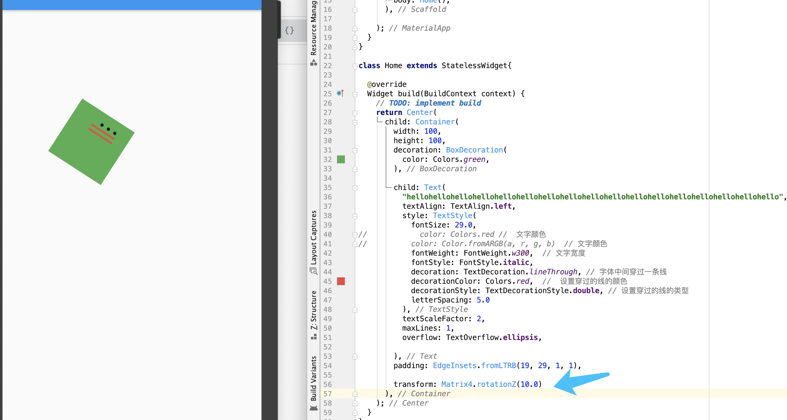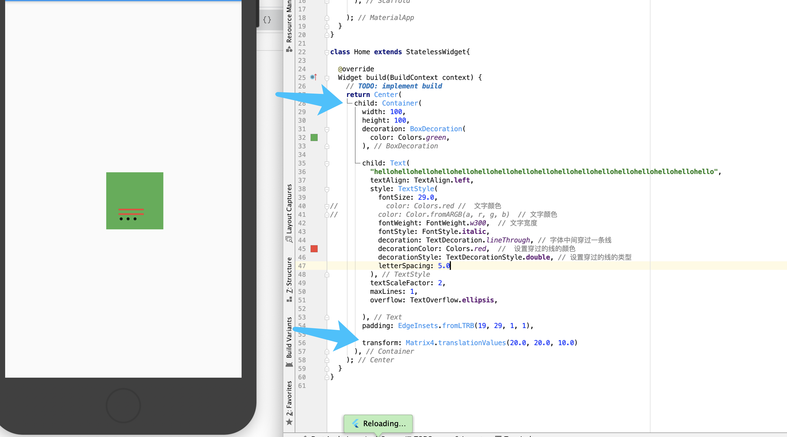 transform: Matrix4.translationValues(20.0, 20.0, 10.0)