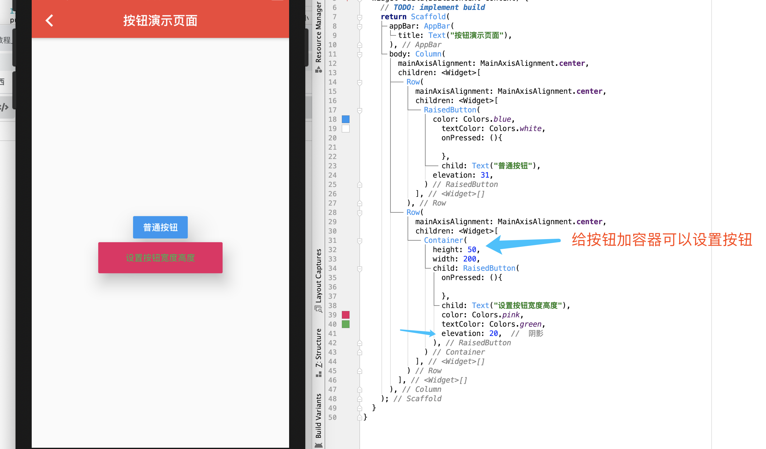 给按钮加容器可以设置按钮的宽度和高度