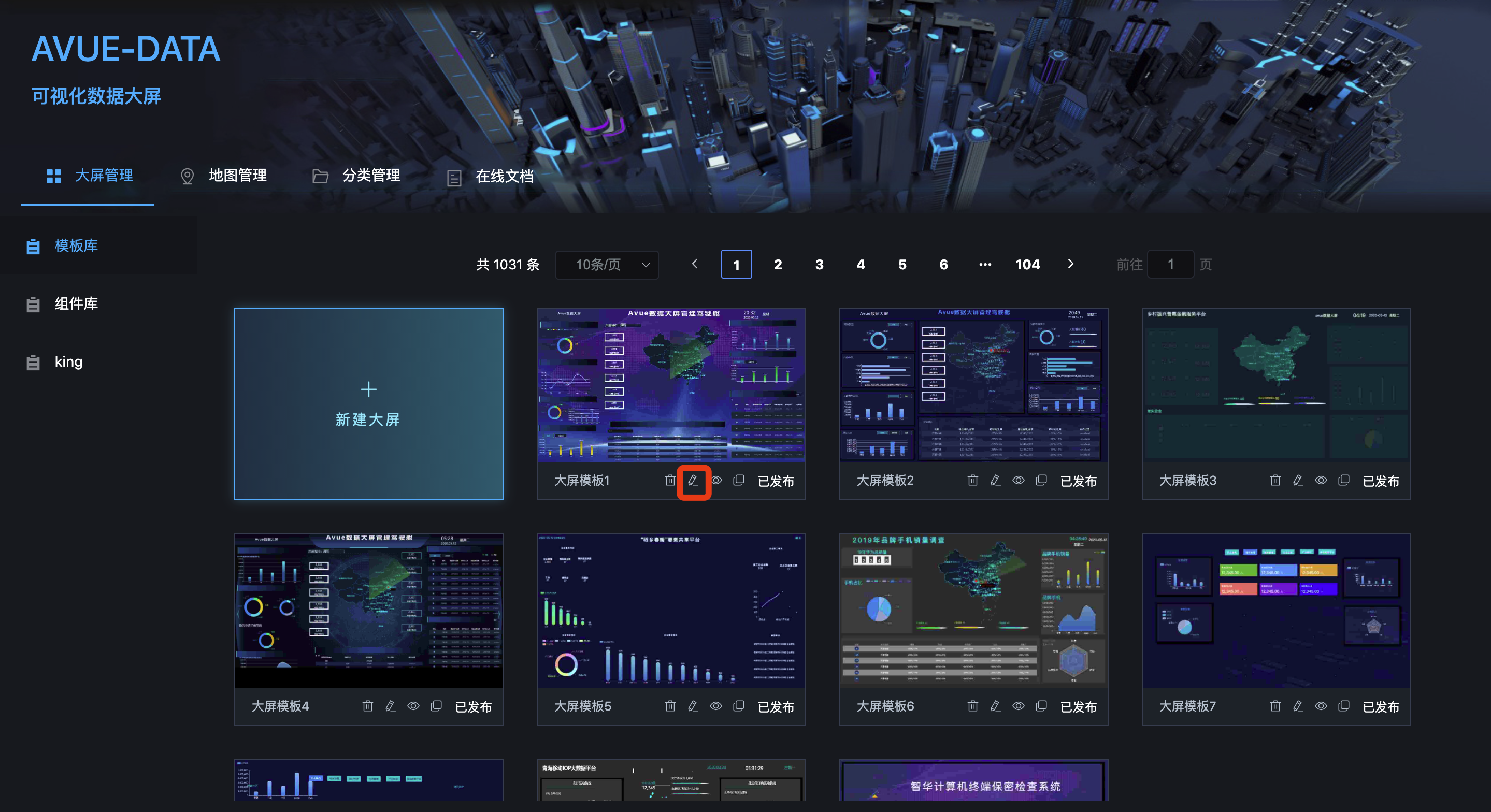 ### 如果相对编辑好的大屏信息修改,可点击图7.11中的修改按钮,进行修改;