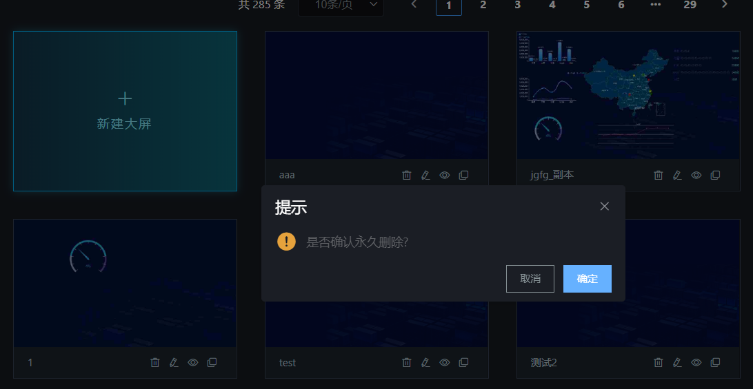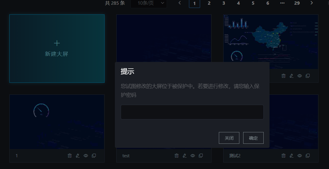 #### 在新建大屏的时候,最好设置大屏密码,这样创建的大屏,别人就不会随意修改和删除。