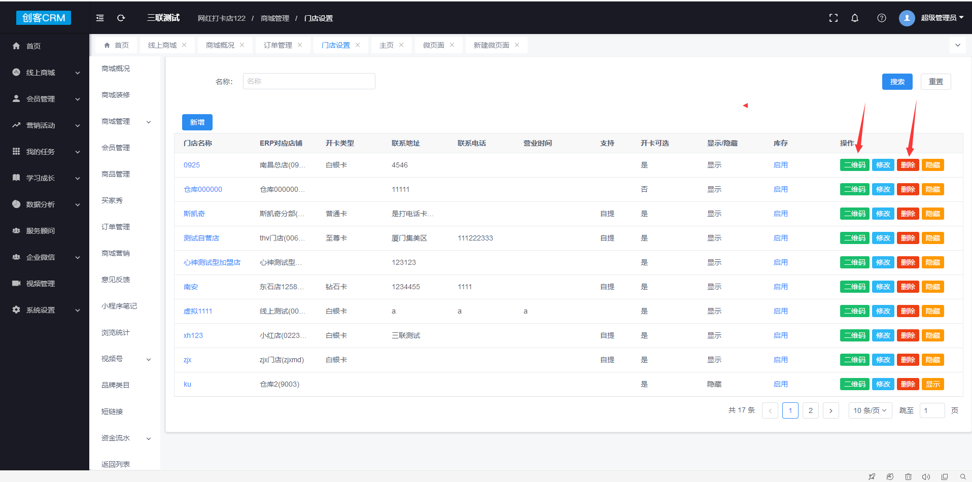 (2).点击店铺管理,在选择其子菜单中的“门店设置”进入门店管理,然后选择页面中的新增,进行店铺关联操作