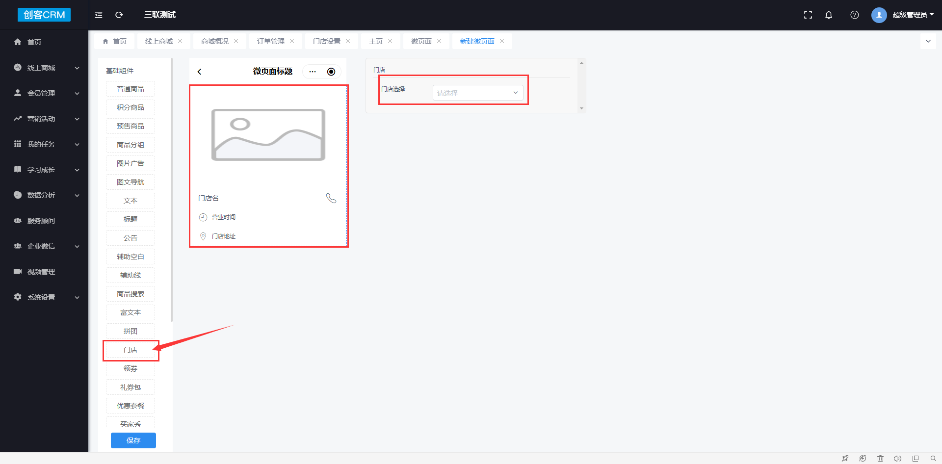 **联系电话,地址,行政区域,地图定位,简介,备注,店招图片**:添加门店组件的时候,可以显示出该门店的信息,地图定位主要控制计算当前位置距离该门店的距离
