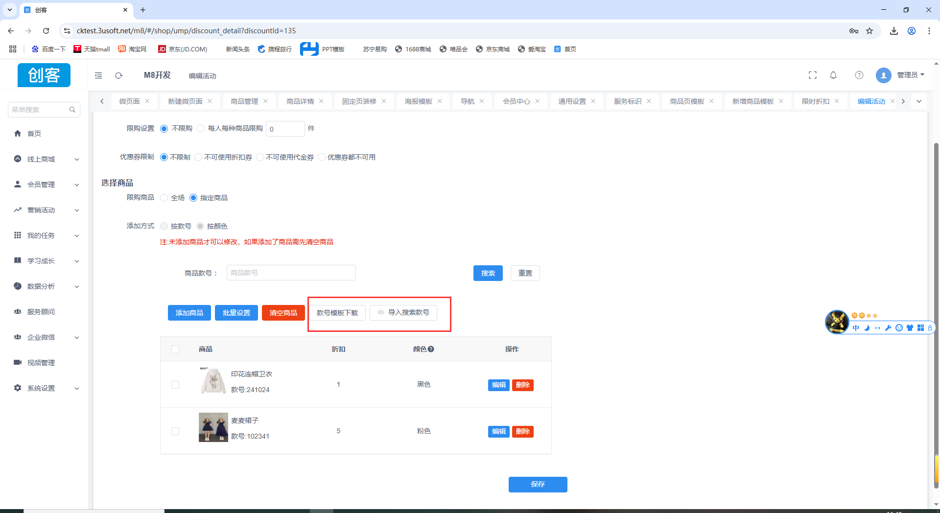 8.创客10.0小程序4.3.0版本更新 限时折扣促销方案可以直接导入商品和折扣