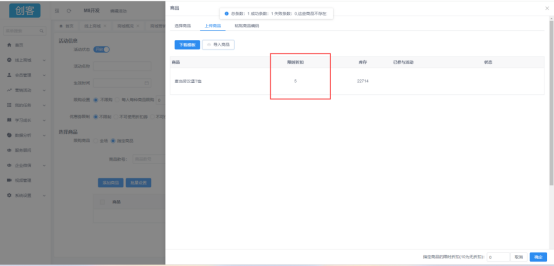 2. 限购商品:可以选择【全场】或者【指定商品】,如果是要给部分商品做折扣活动,那么就要选择【指定商品】这种方式,然后在添加指定的商品,如下图
