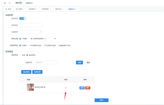 2、限时折扣活动增加活动生效后可再次进行编辑。