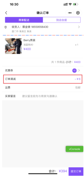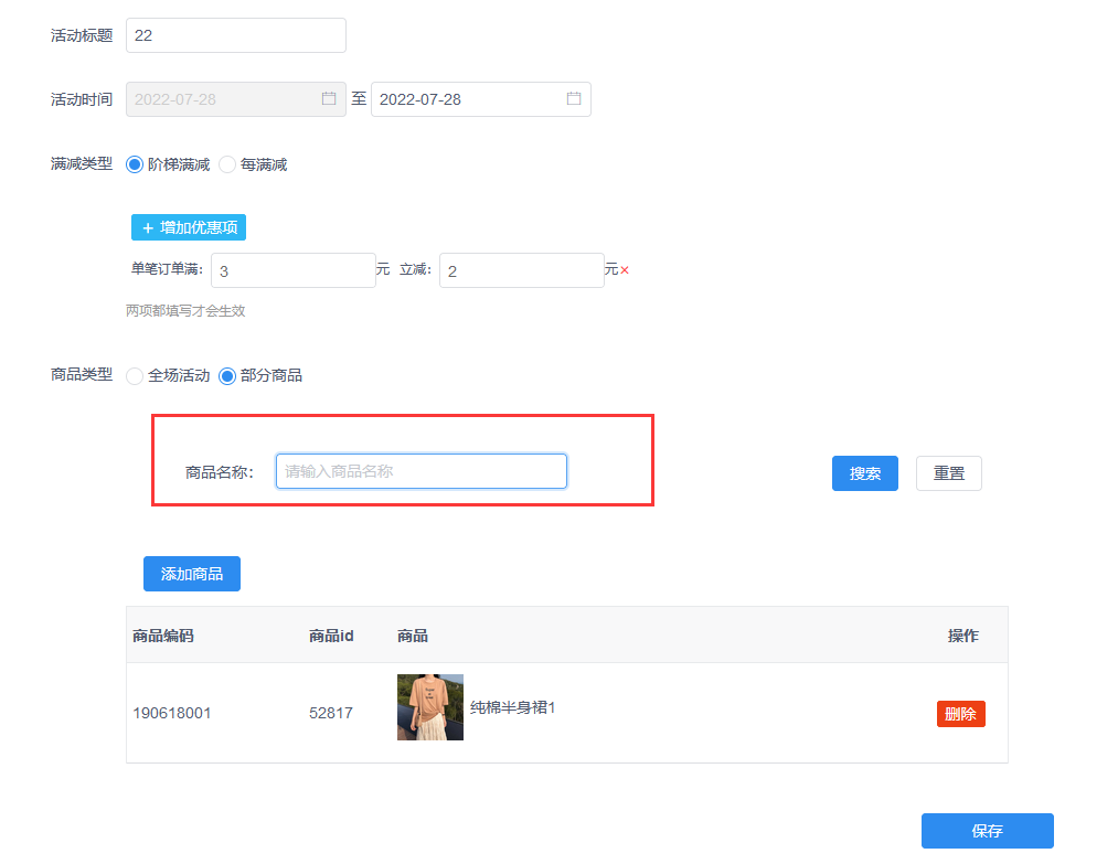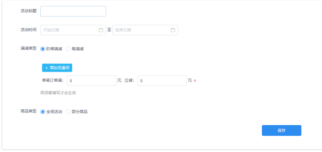 满减活动针对的是订单,可以设置不同梯度的价格来满足不同订单价格可享受优惠的满减金额。