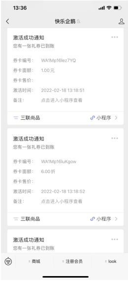 5、小程序开卡绑卡送券进行公众号微信通知
