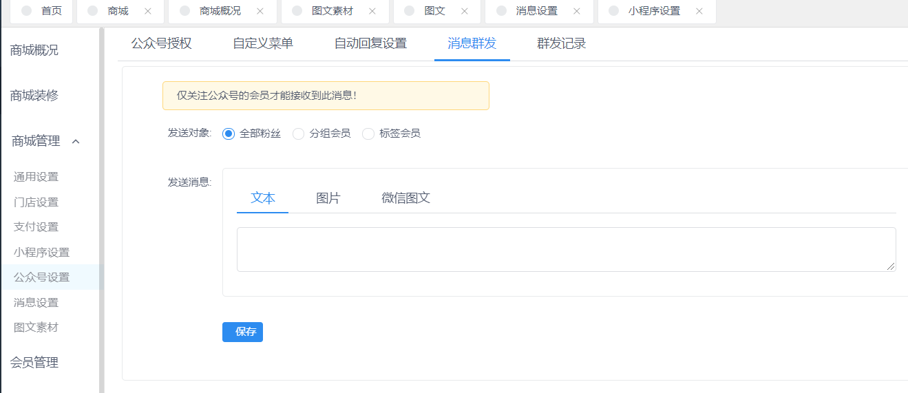1、设置发送对象(全部粉丝、分组会员、标签会员)