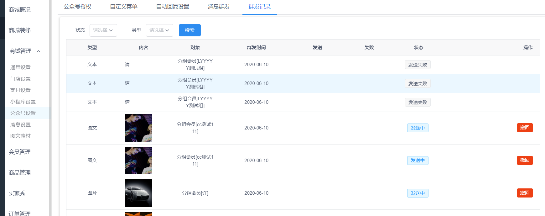 ### **四、群发记录**