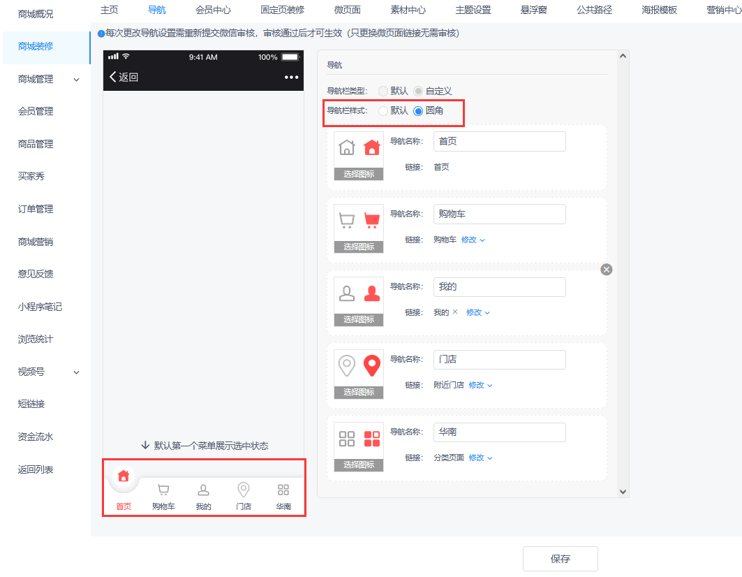 - 商城装修如何跳转到首页、会员中心、购物车、直播间等