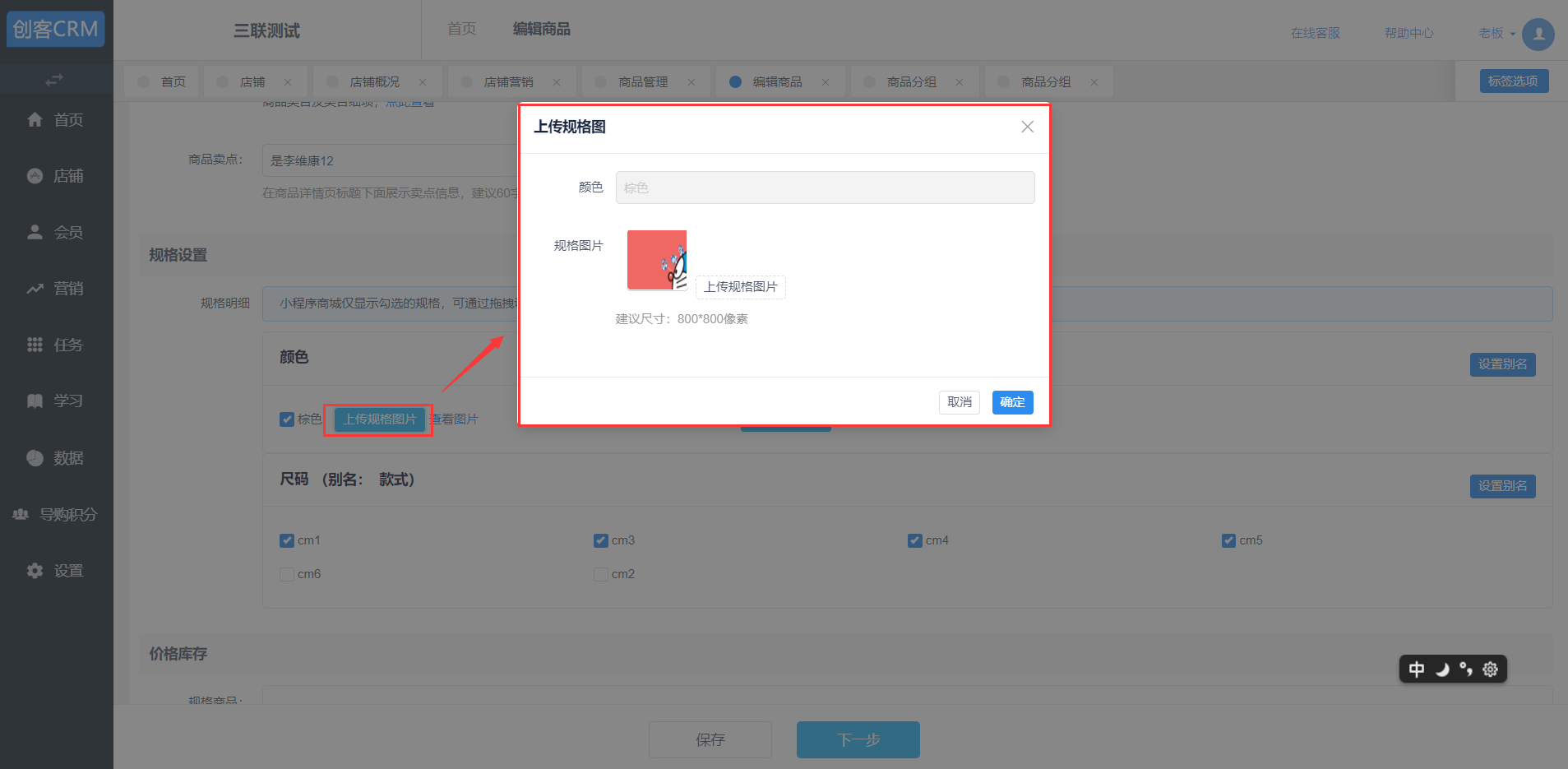 在创客商品管理页面点击编辑,在规格设置可通过拖拽调整规格顺序。
