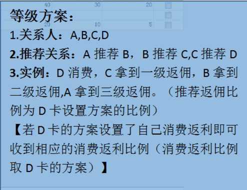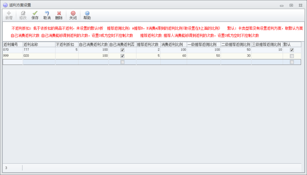 **系统参数:推荐返利方案类型设置成1返利方案取消费人对应的设置(支持到3级推荐人)**