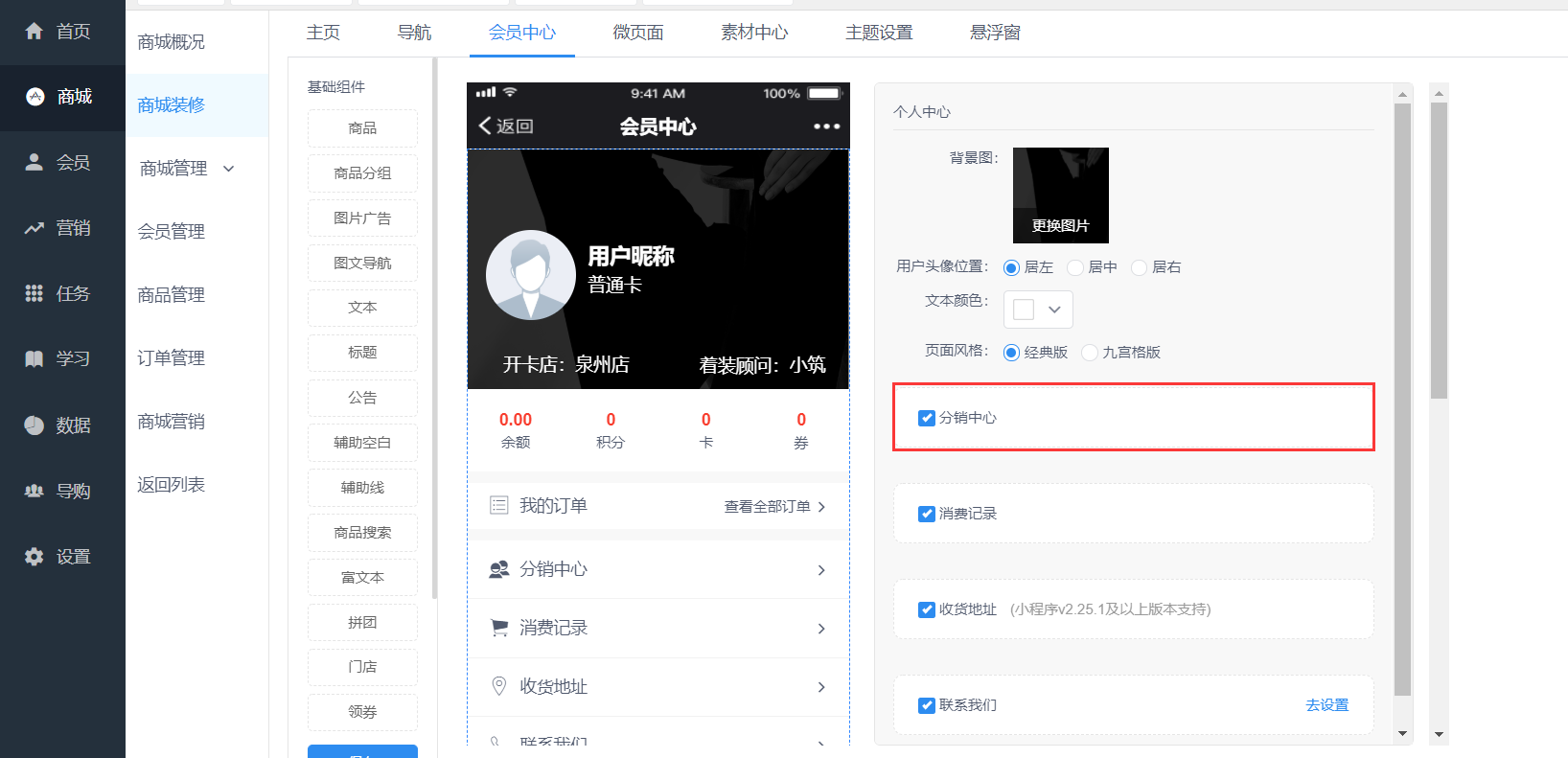 - 会员中心装修分销中心