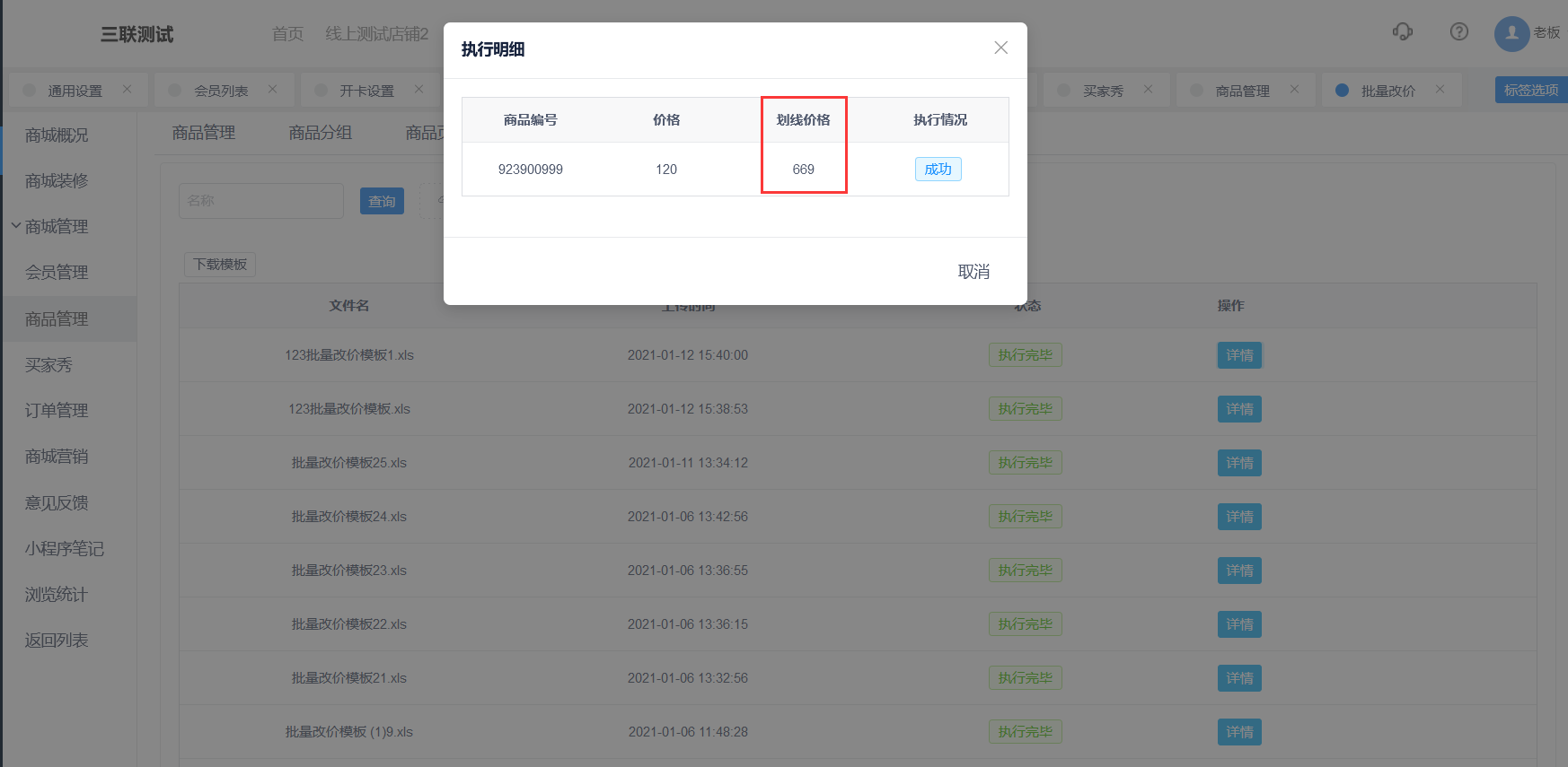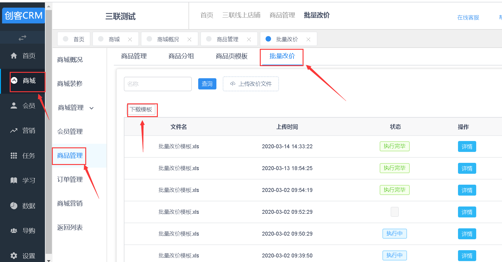 下载模板,整理款号跟价格,上传改价文件。可以点击右边查看详情。