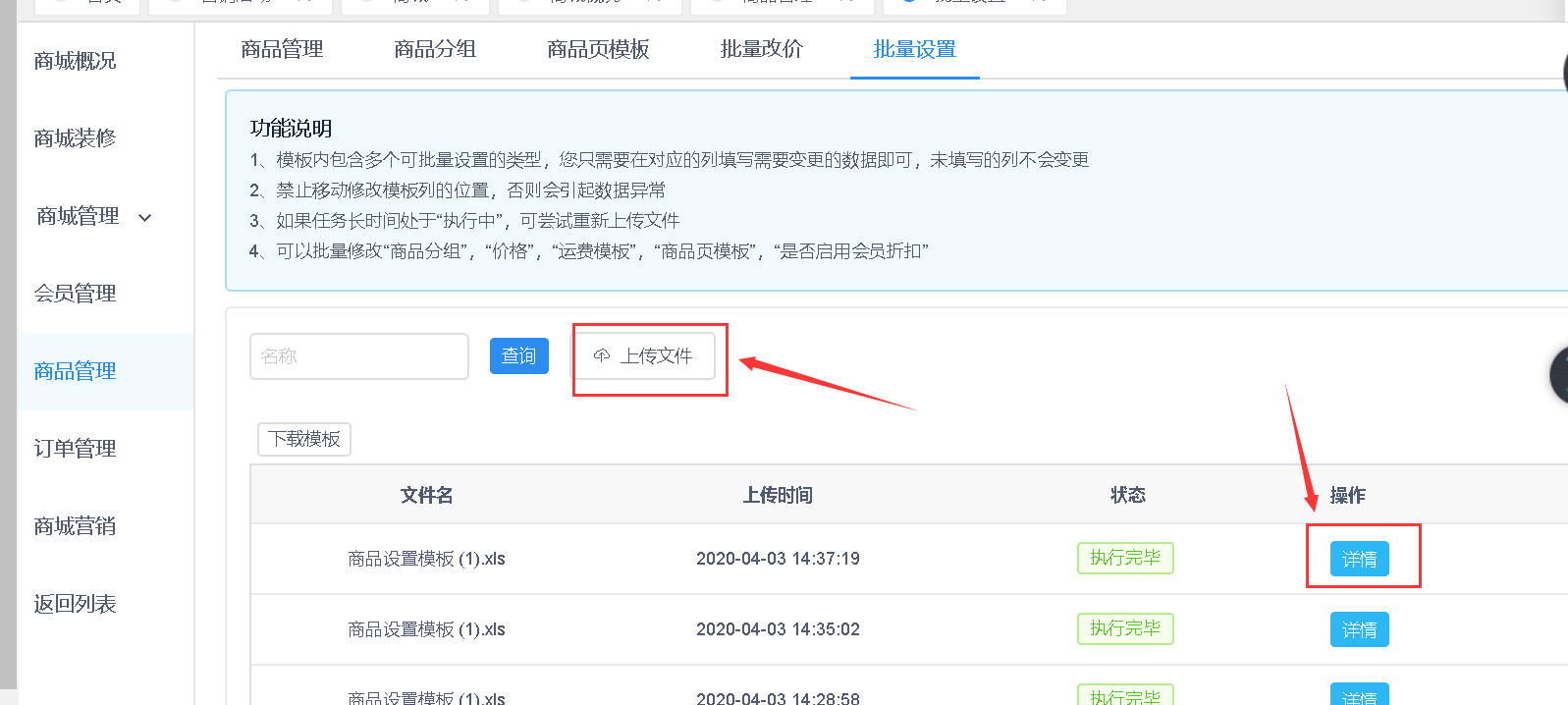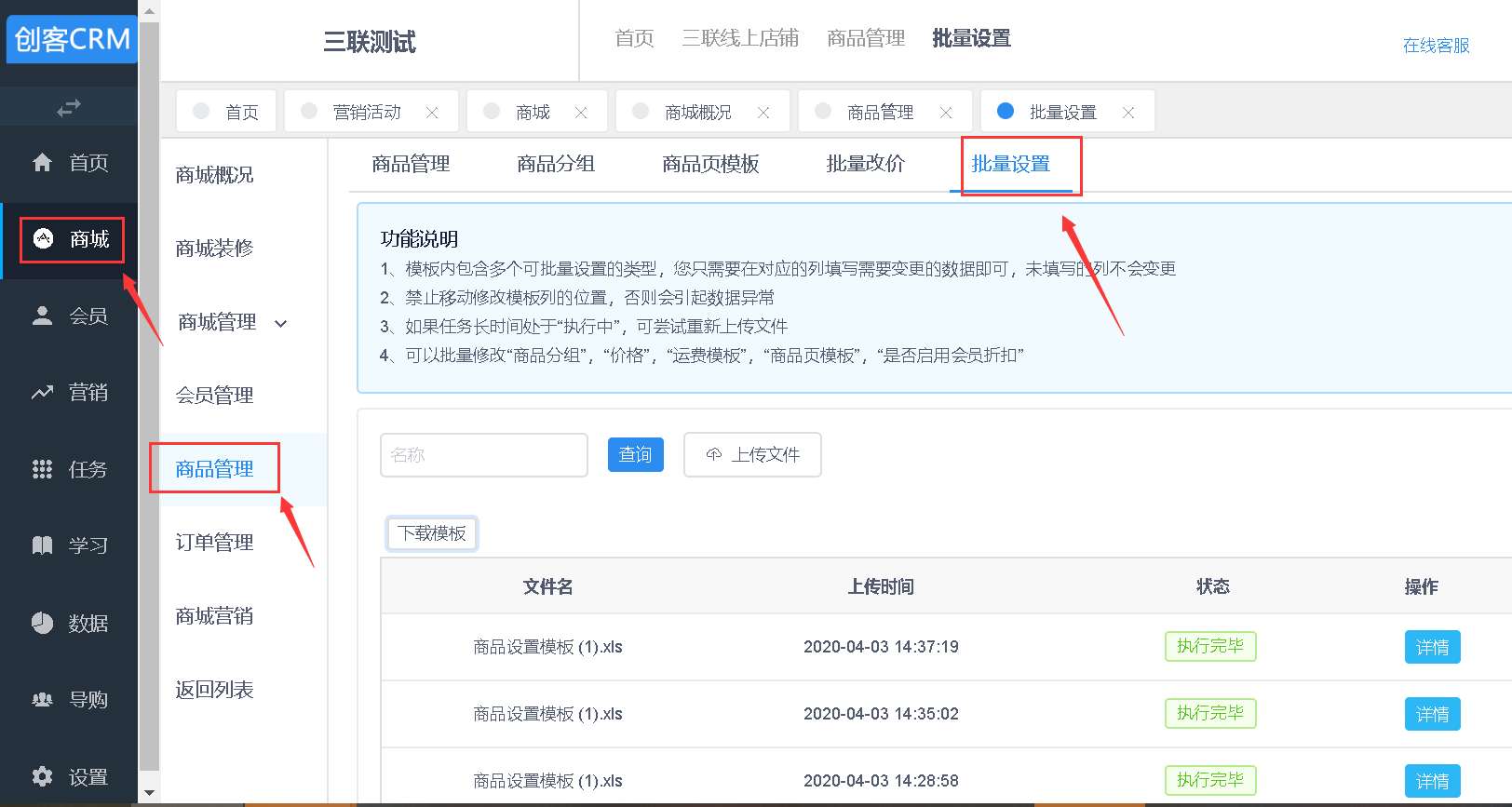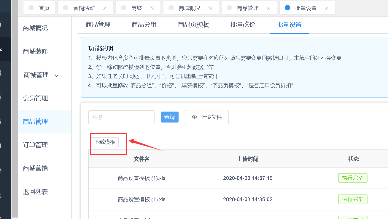 路径:商品>商品管理>批量设置