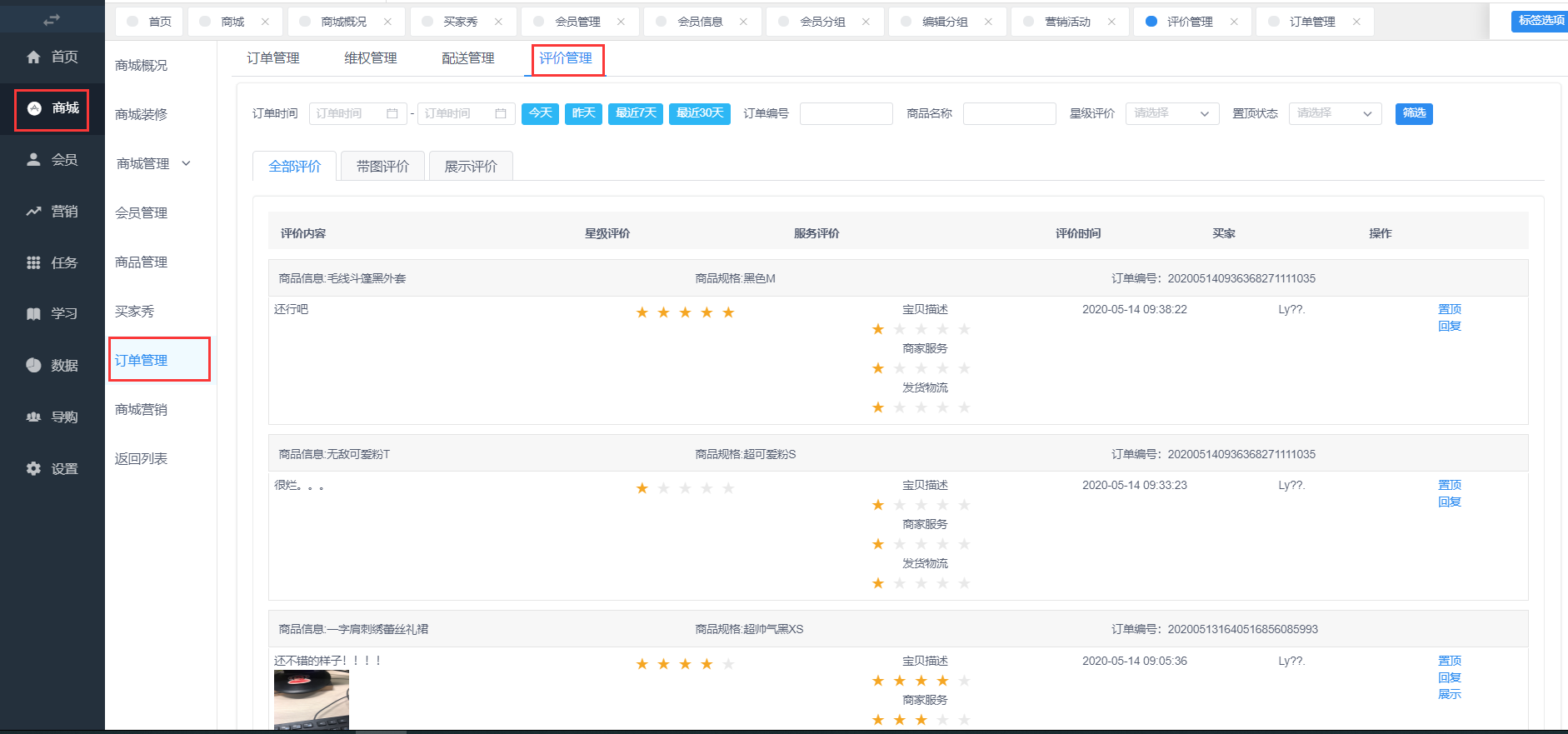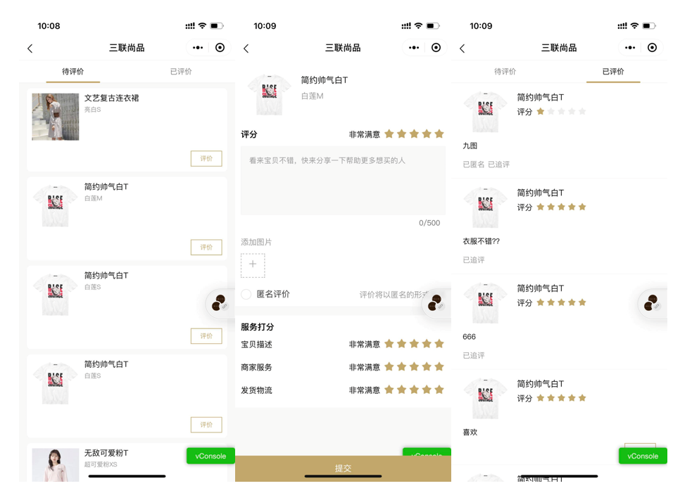 用户订单收到货后即可在小程序订单列表或评价中心评论,评论后可在评价中心进行查看评论或追加评论