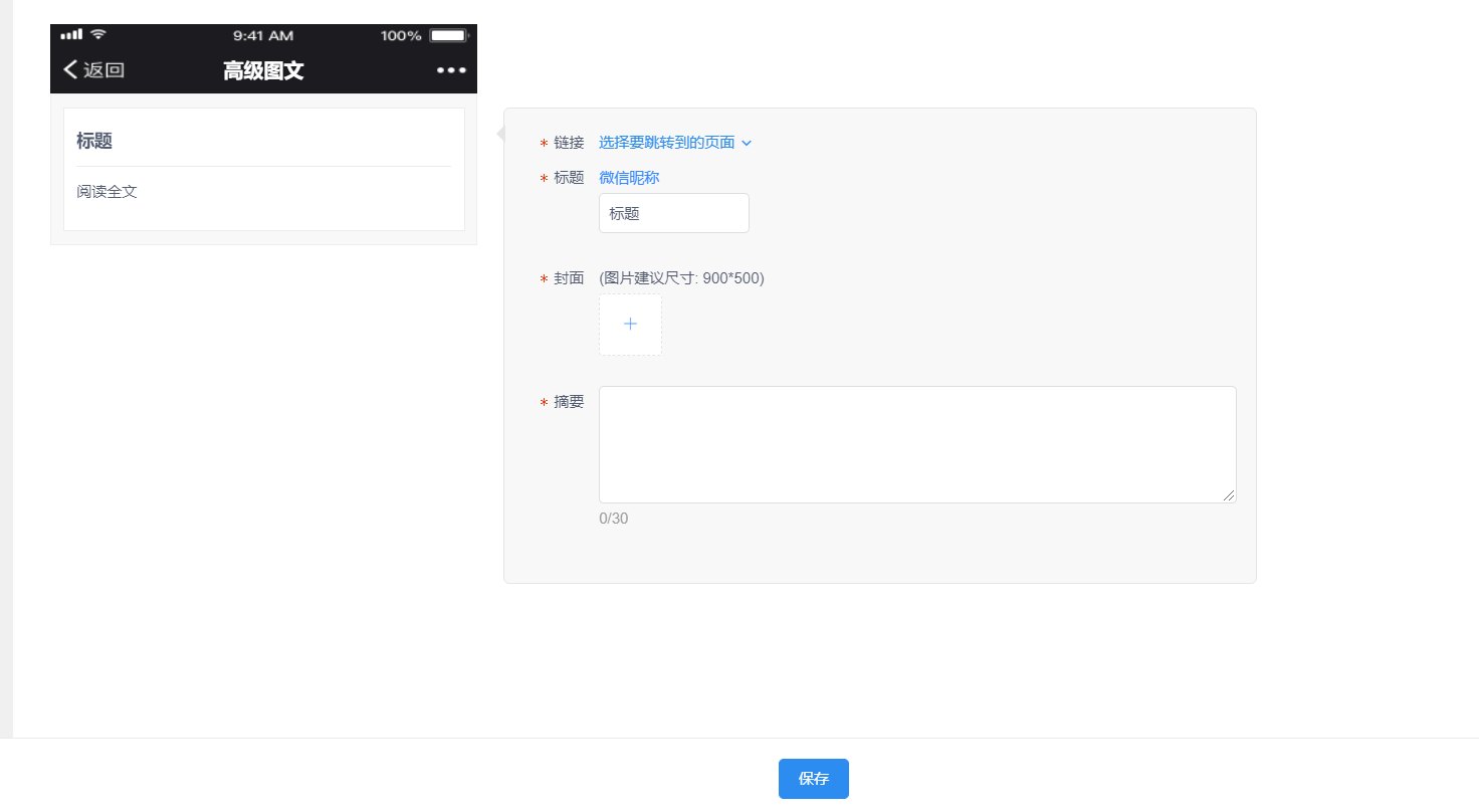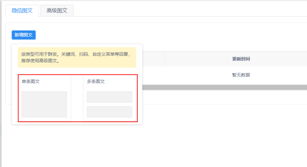 高级图文:可用于关键词、自定义菜等回复;(后期开发)