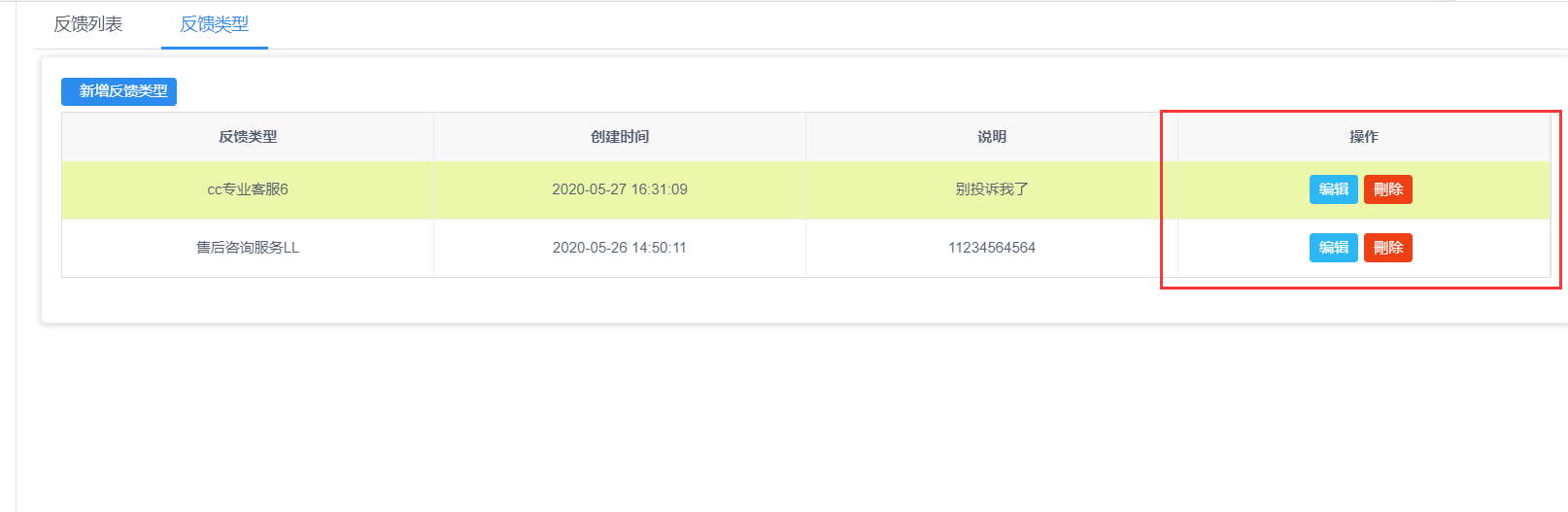 在反馈类型右边操作,可进行编辑修改或删除。
