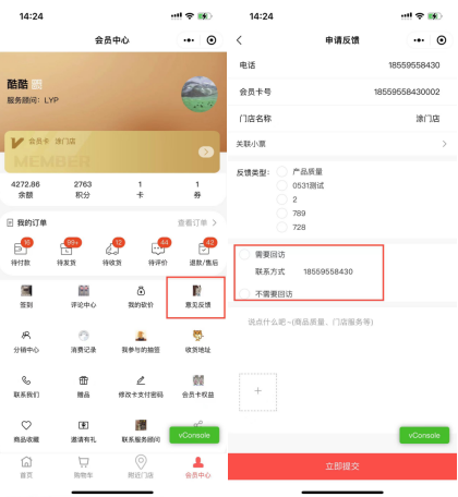 3.1、会员中心装修意见反馈。