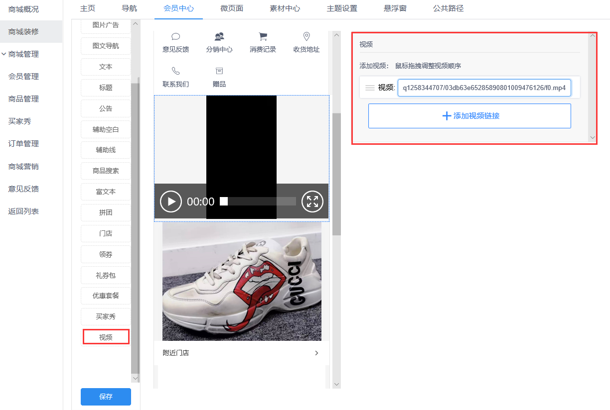 路径:商城>商城装修>微页面>视频