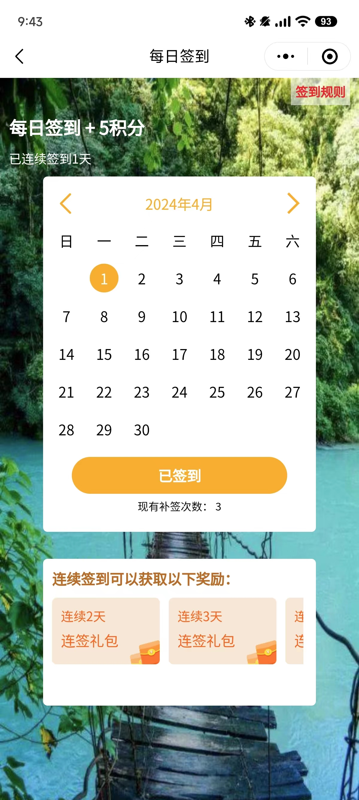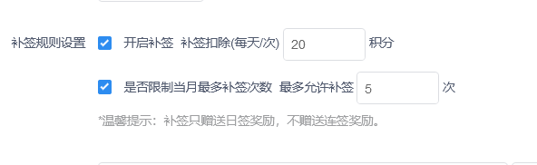 1/增加补签功能每次需扣除对应的积分才能补签,增加每月最多补签次数,补签只赠送日签奖励,不赠送连签奖励。