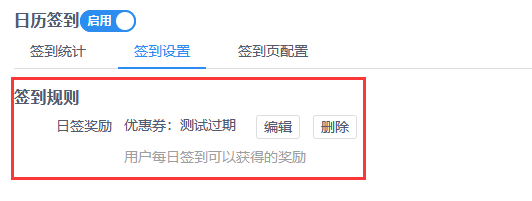 **1.设置签到规则**,设置日签奖励(**可设置积分或优惠券单选**)