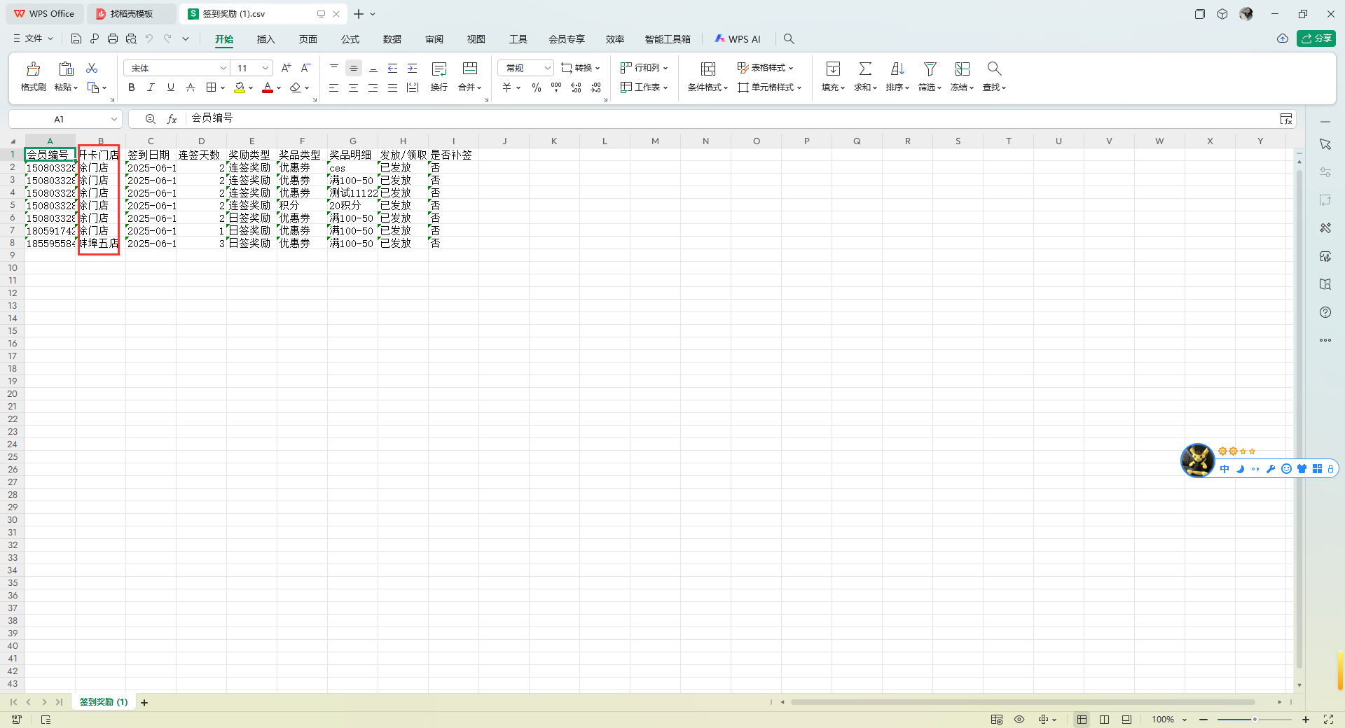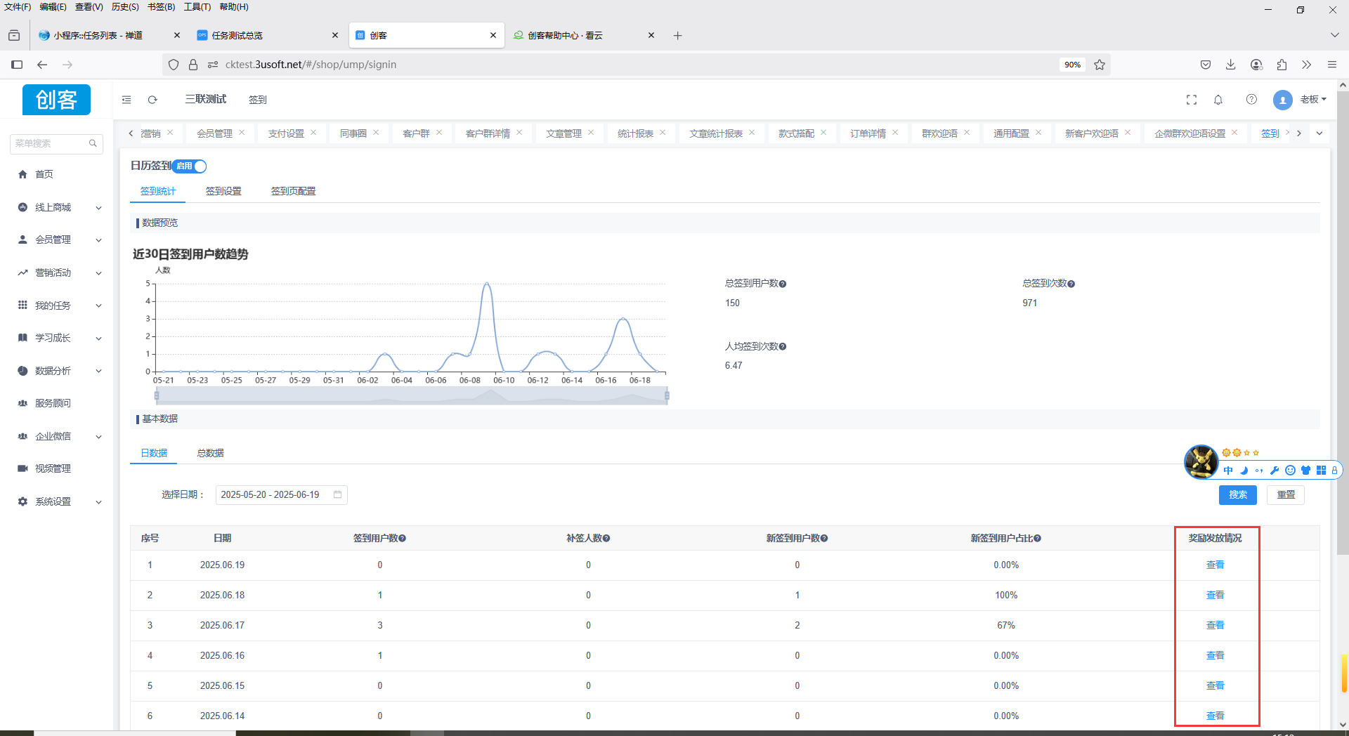 签到列表奖励发放情况增加开卡门店字段