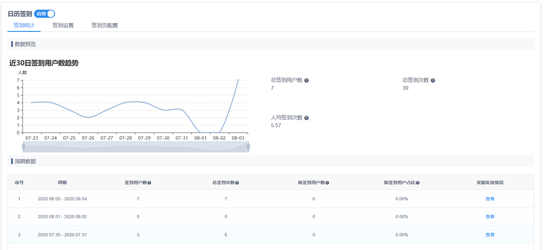签到用户数:当前周期内产生签到行为的用户数量