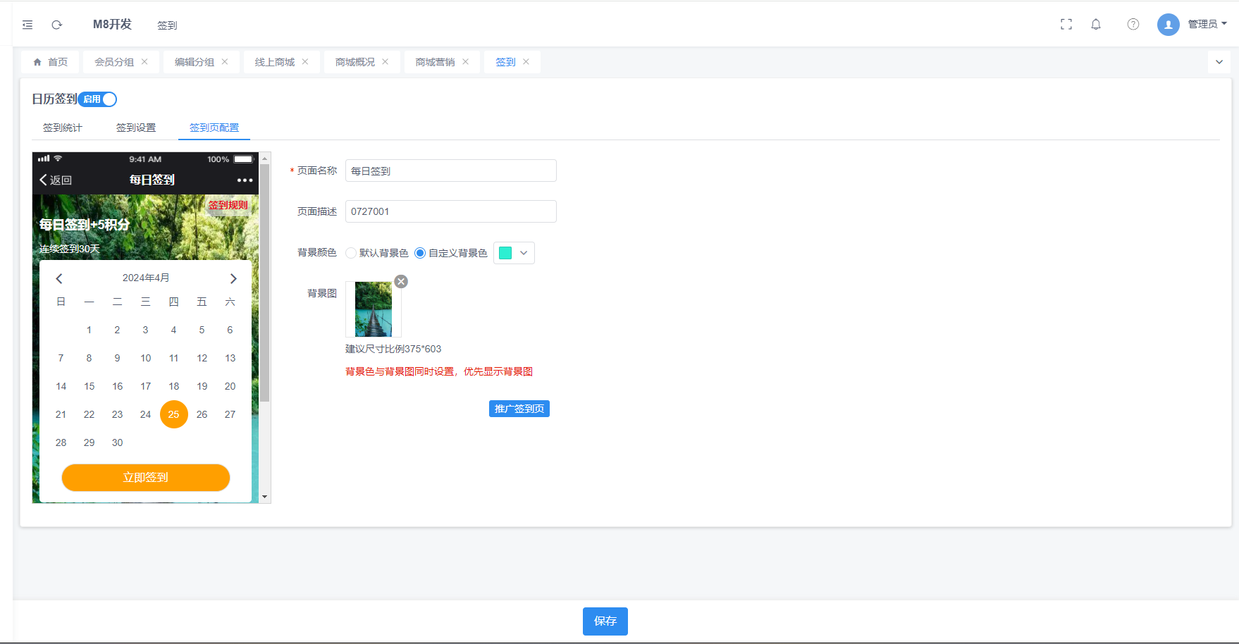 3、签到页面支持自定义背景图