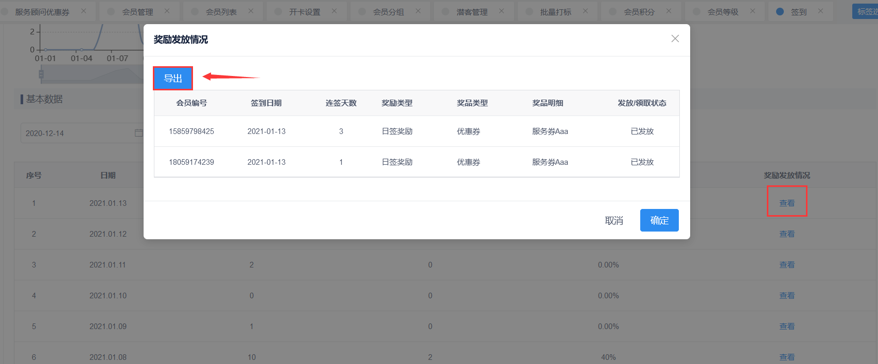 1、签到奖励增加导出按钮