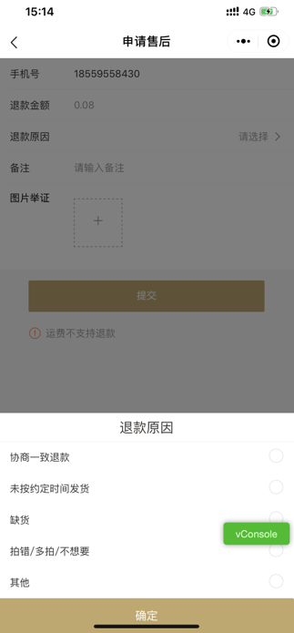 ### **一、小程序申请维权退款原因调整**