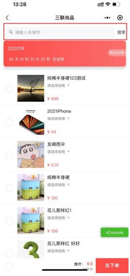 1.满x件打y折活动支持搜索商品