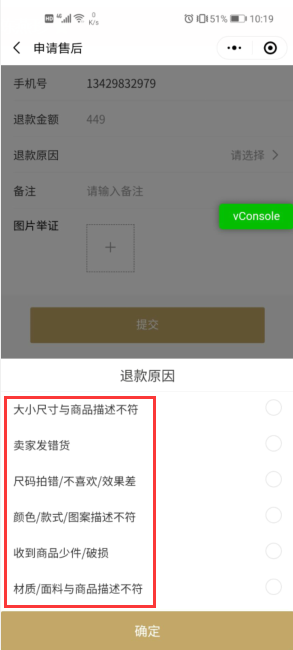 创客商城订单管理添加“维权原因”管理模块,新增维权原因区分退款或者是退货类型,维权原因如果选择“退款”,那么小程序端未发货订单申请维权退款原因仅能选择到维权为“退款”类型的原因,反之如果是已收货订单申请维权退货原因仅能选择到维权为“退货”类型的原因;