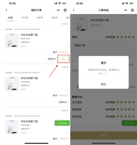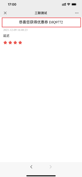 5. 小程序评论有礼活动,线下消费评价后返回赠送的优惠券信息