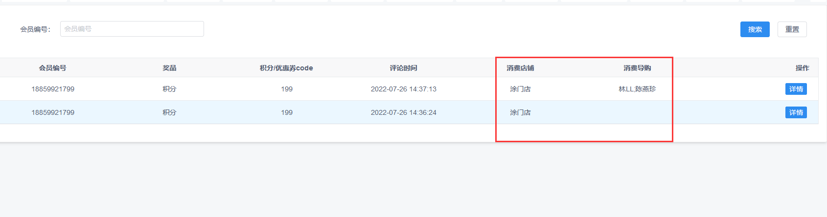 7.创客评论有礼,参与明细添加消费店铺和此次服务导购
