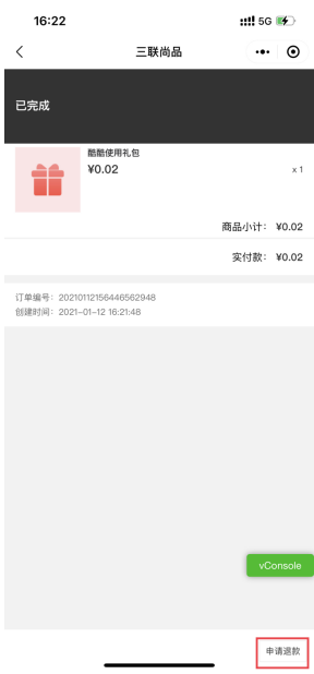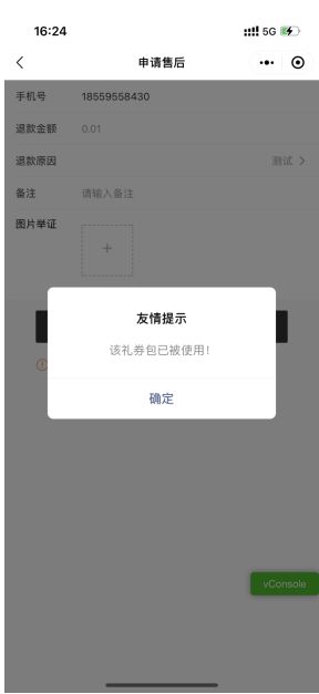 小程序礼券包订单管理增加申请退款按键