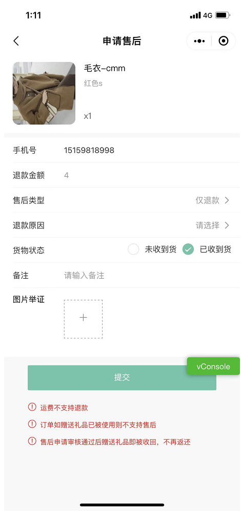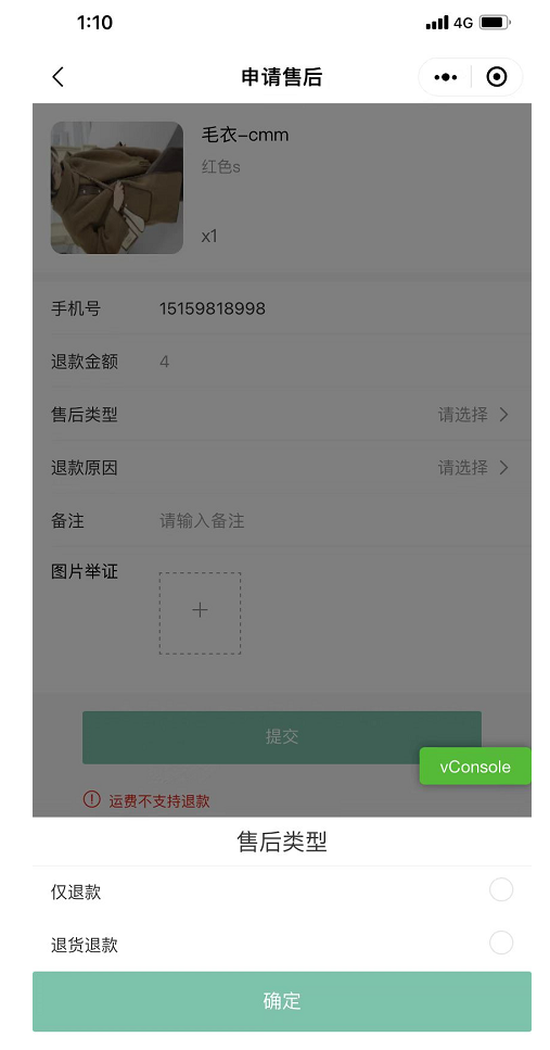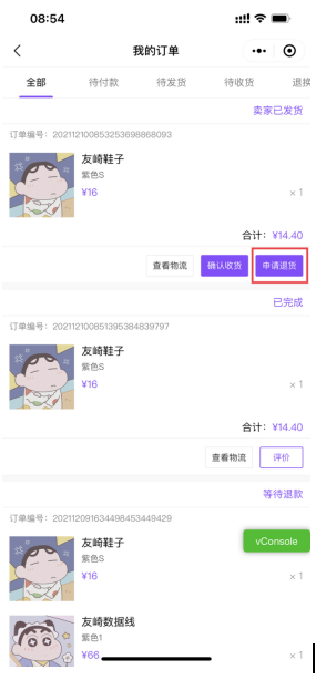 ### **七、小程序增加无需收货直接申请退货**