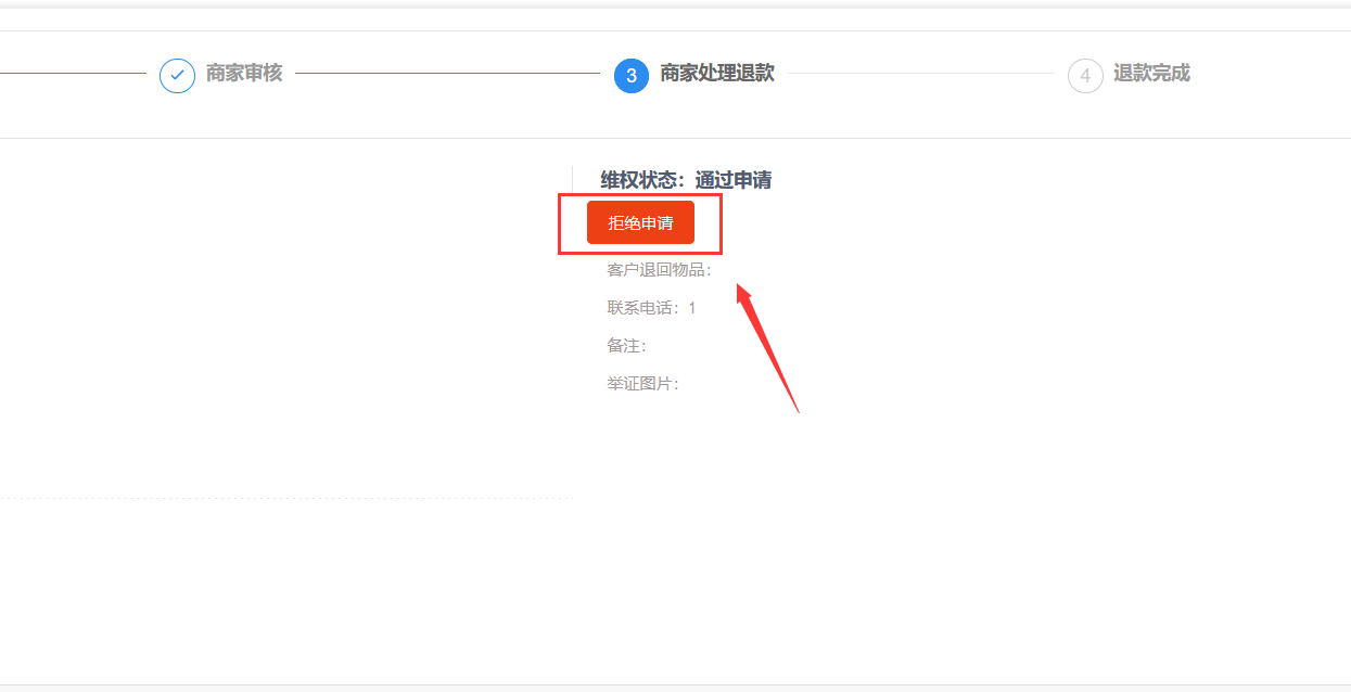 发起维权通过申请后增加拒绝申请按键。