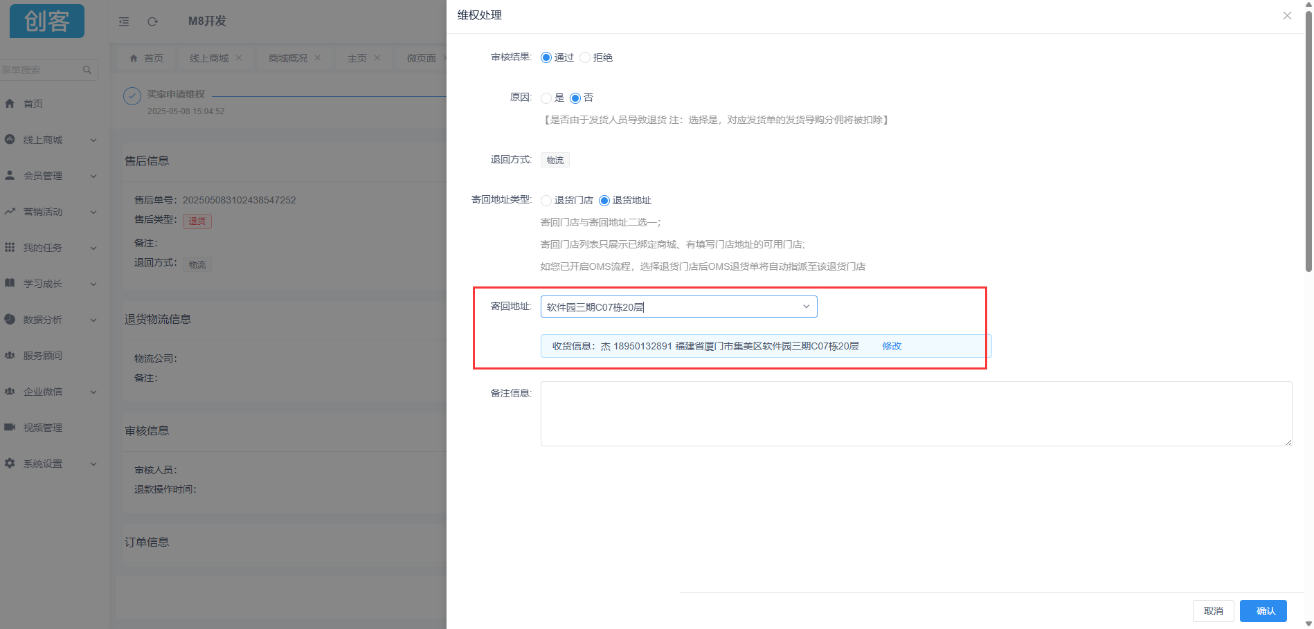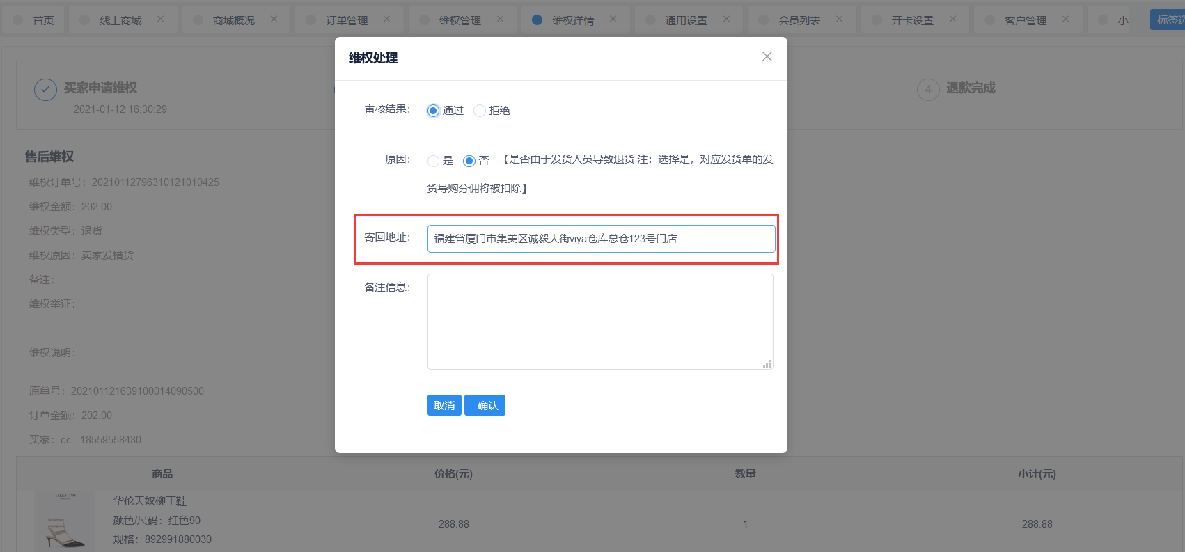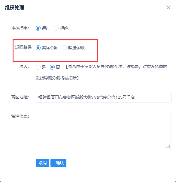 21.维权审批-退货门店、退货地址信息支持修改
