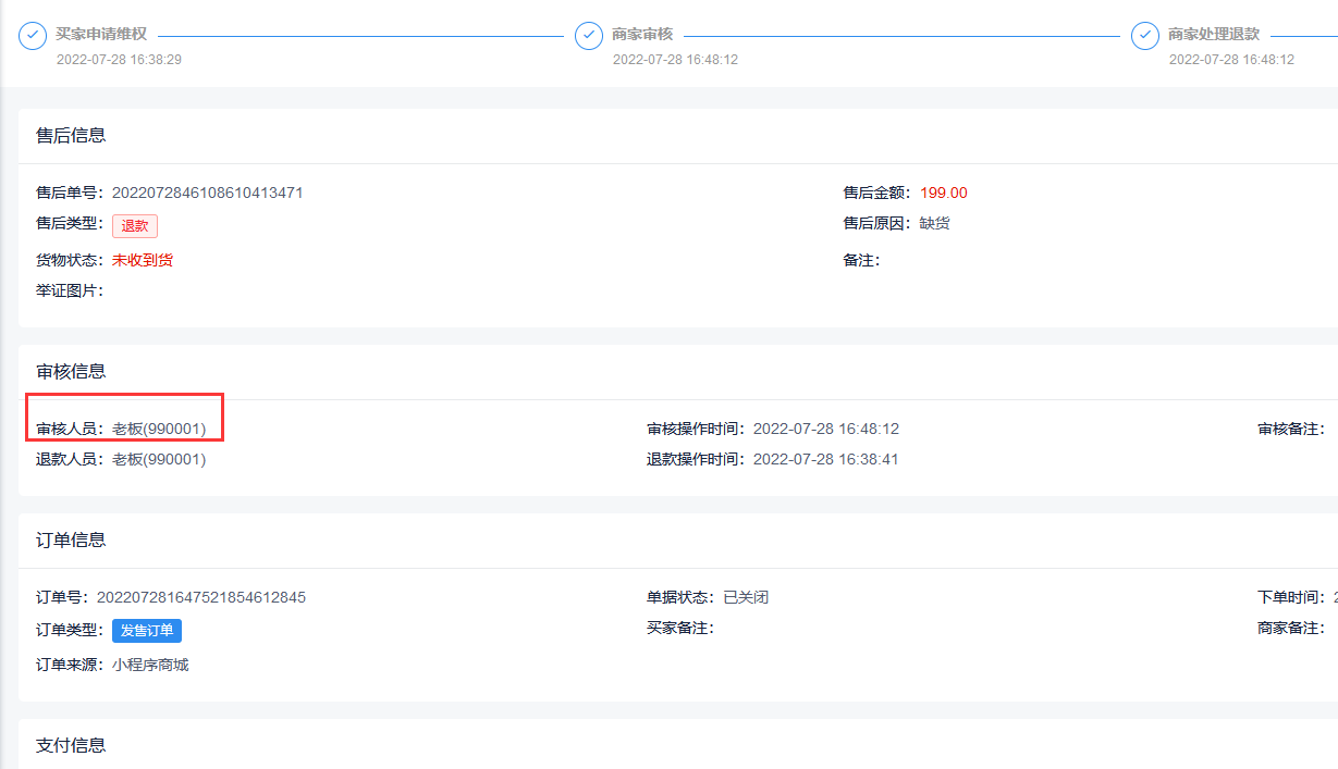 1.3小程序订单维权通过后显示商家联系人与电话
