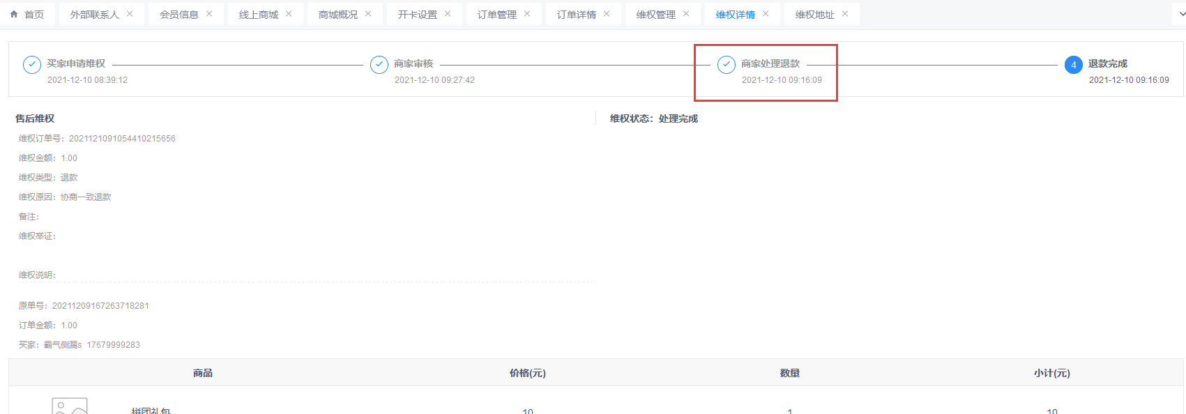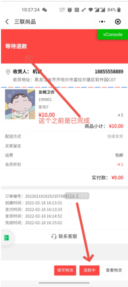 订单已完成后发起维权,已完成状态改成等等退款