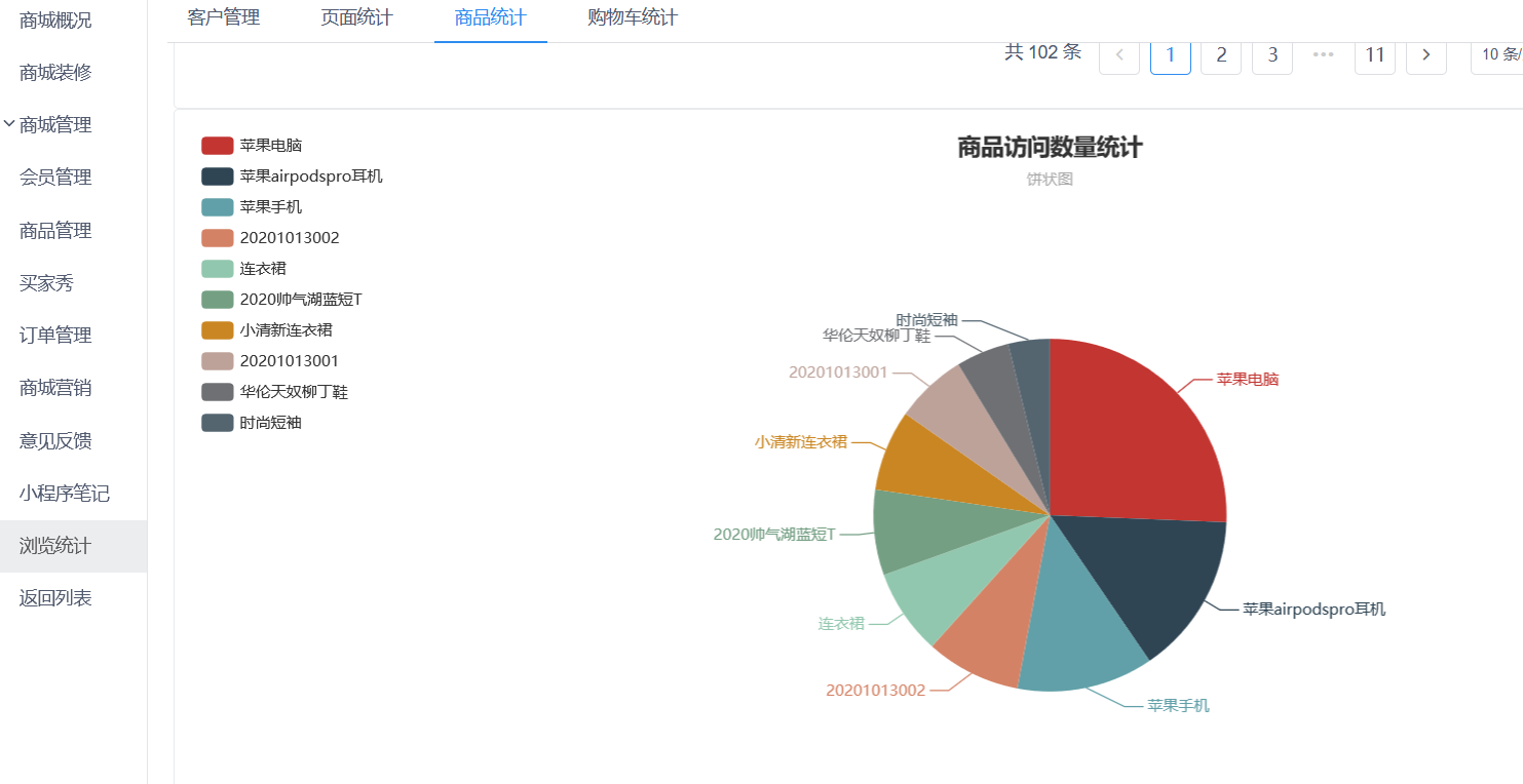 3.4商品统计下方可以查看商品访问数量统计饼状图。