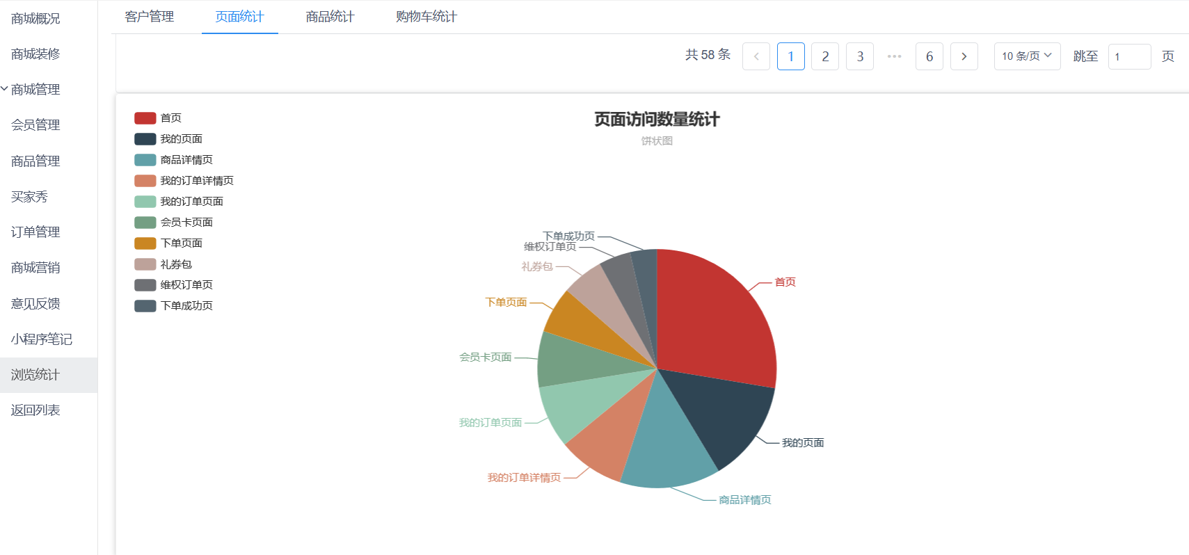 2.4页面统计下方可以查看页面访问数量统计饼状图。