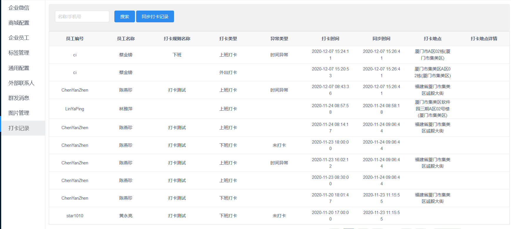 点击同步打卡记录,选择时间段、选择员工进行同步打卡记录。